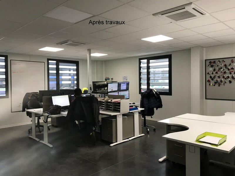 - Bât C : ensemble de bureaux, salle de réunion, vestiaires et sanitaires et local pour les pièces détachées : 230 m²